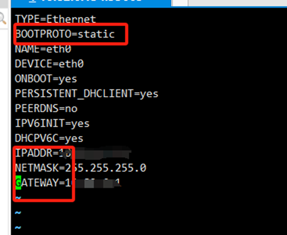 IPADDR=x.x.x.x,NETMASK=255.255.255.0,GATEWAY=x.x.x.x