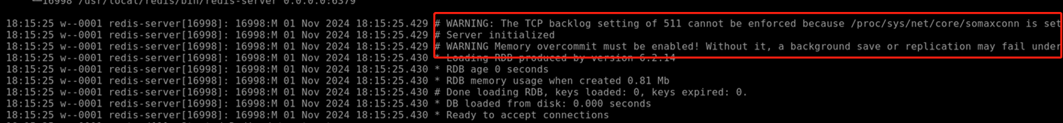 解决redis启动时的三个警告The TCP backlog setting of 511 cannot be enforced because /proc/sys/net/core/somaxcon
