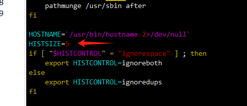 问题处理:在/etc/profile中将修改成HISTSIZE=5