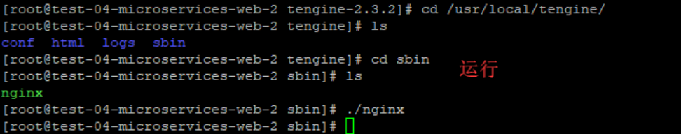 至此,安装完成,tengine遵循nginx语法规则,因此在使用上配置文件写法一致。