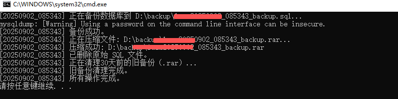 windows环境mysql自动备份压缩删除脚本