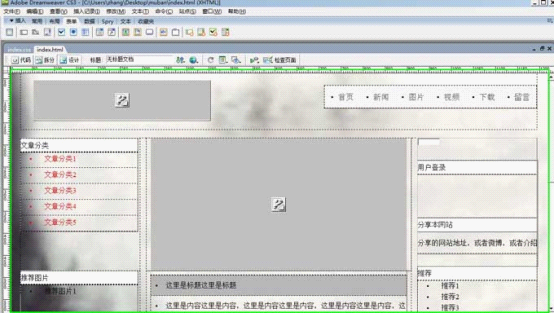 我们设计好我们想要的布局,在PS里面设计好布局(这里最好不要使用切片技术切割布局,切片大多使用的绝对定位,做出来的页面没有实际应用意义),在Dreamweaver里面设计好div框架如图所示: