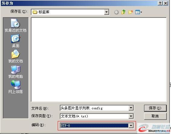 最后给出使用外部程序修改标签的唯一条件,就是要按utf8格式进行保存,使用记事本编辑时,保存选项如下: