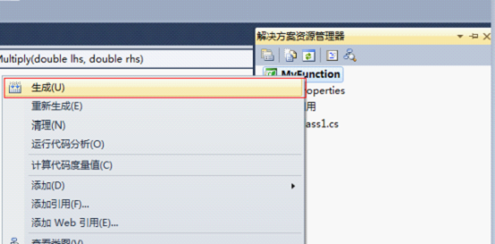 接下来我们,选择生成菜单的生成MyFunction,生成此程序集,此主题如下:
